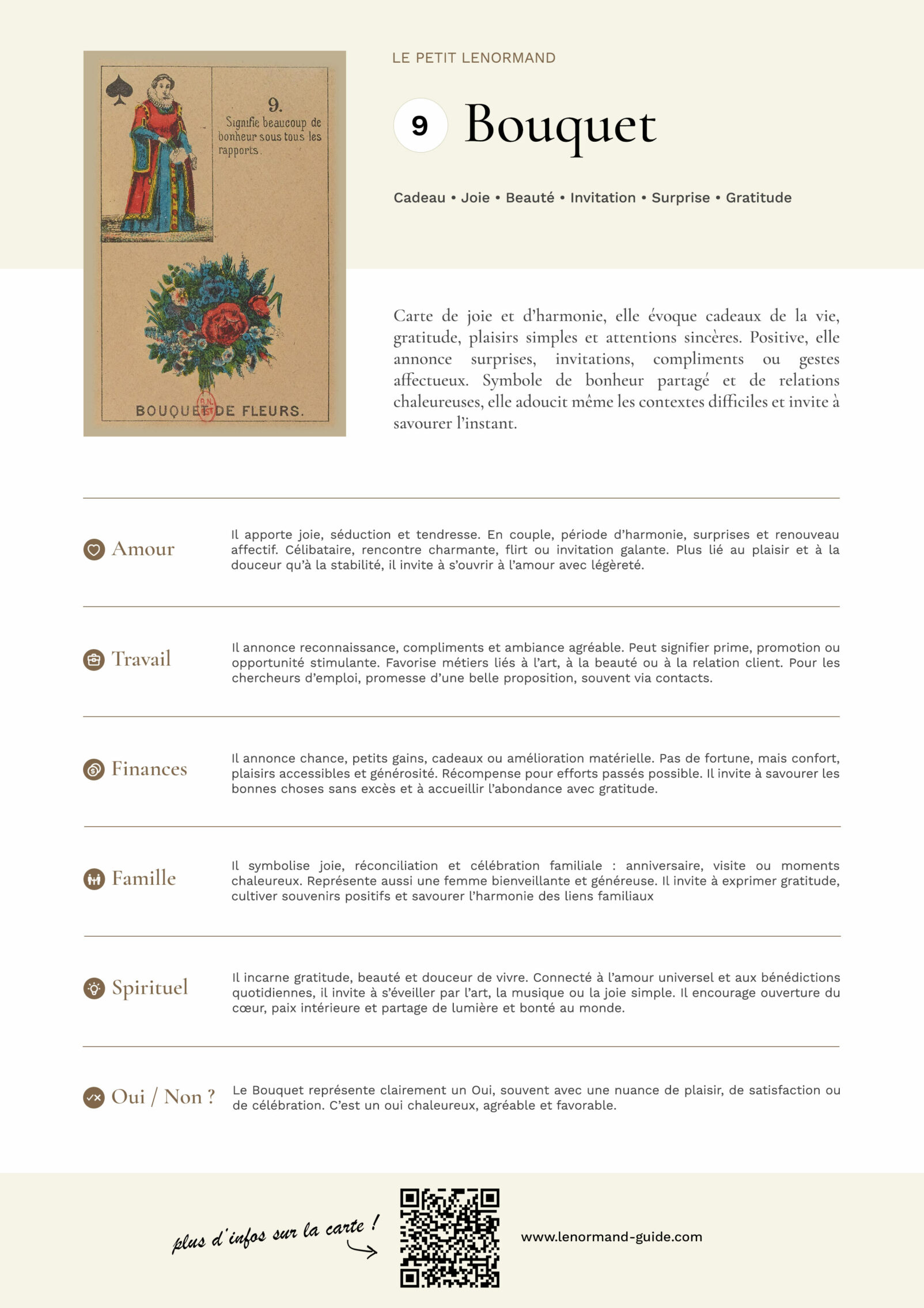 Synthèse visuelle de la carte n°9 Bouquet du Petit Lenormand